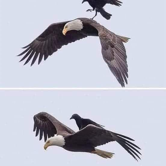 Ωστόσο, ο αετός δεν αποκρίνεται ούτε επιτίθεται στον κόρακα. Δεν χάνει χρόνο ή ενέργεια μαζί του. Απλά απλώνει τα φτερά του και αρχίζει να ανεβαίνει ψηλότερα στον ουρανό.
