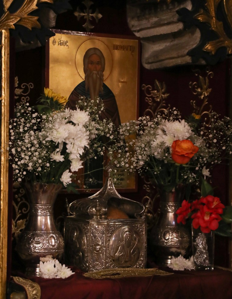 Αλλά δεν τον ευχαριστούσε η ασκητική ζωή σ᾿ αυτό το μοναστήρι, γιατί ήθελε πιο αυστηρή καλογερική, και μίσεψε από κει και πήγε στο Μελισσόβουνο κι᾿ ασκήτεψε ένα χρόνο μέσα σ᾿ ένα σπήλαιο. ΄Ύστερα μπαρκάρισε και πήγε στον Άγιο Τάφο κι᾿ απόμεινε έξι μήνες εκεί πέρα. Μετά, γύρισε πάλι στην Κύπρο και πήγε στην Πάφο και τον πιάσανε οι στρατιώτες που φυλάγανε το κάστρο και τον βάλανε φυλακή ένα μερόνυχτο. Σαν τον λευτερώσανε, τράβηξε παραμέσα στο νησί για να βρει μέρος ήσυχο να ασκητέψει. Περπάτησε όπως τον φώτισε ο Θεός κ᾿ έφτασε σ᾿ ένα μέρος απόγκρεμνο, και έψαχνε από τον Ιούνιο έως τον Σεπτέμβρη. Τέλος βρήκε ένα σπήλαιο που φωλιάζανε μέσα όρνια και φίδια κ᾿ έπιασε και το βάθαινε.