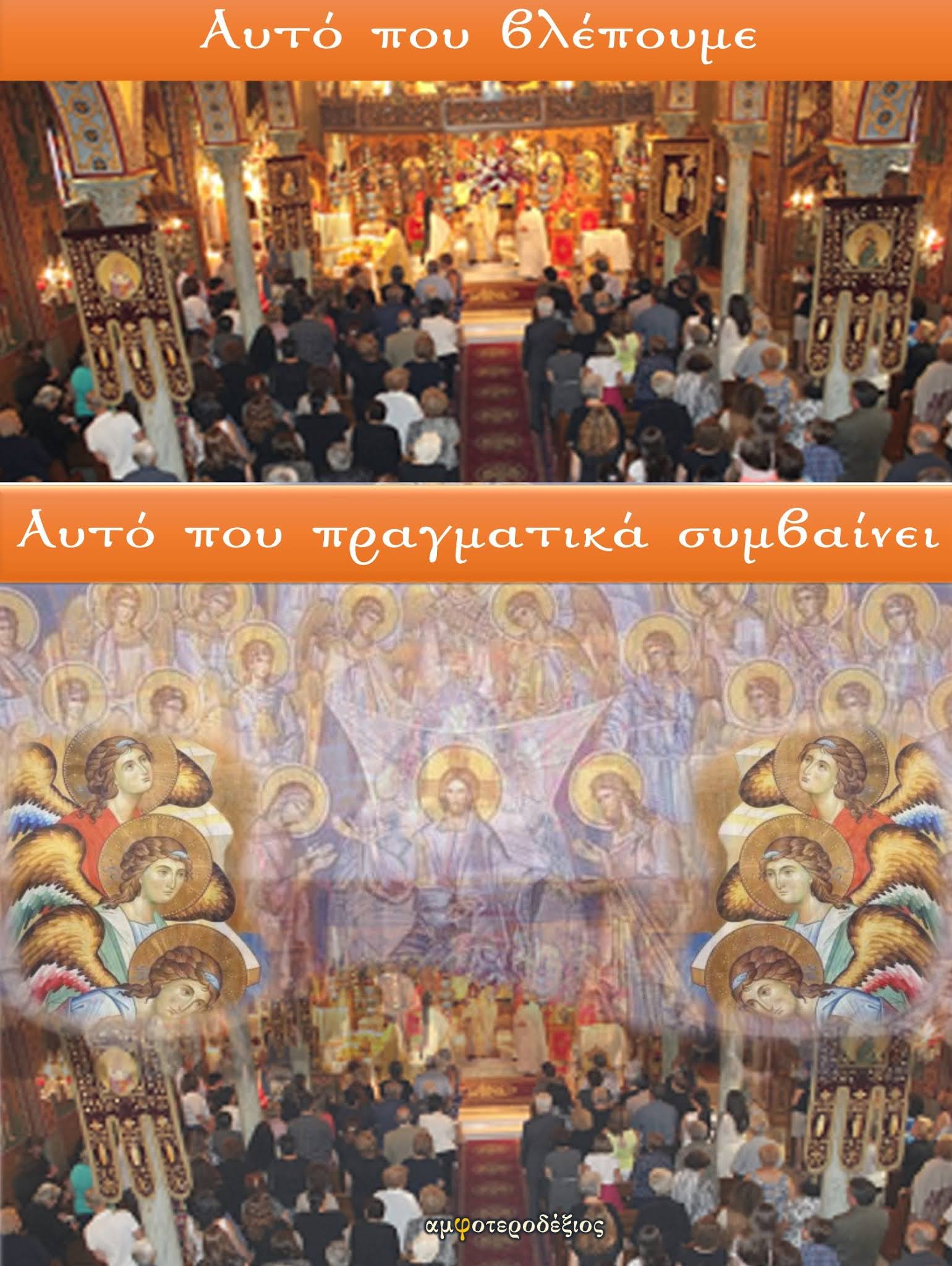 Εδώ κατεβαίνει ο Χριστός, το Άγιο Πνεύμα παρόν, οι άγγελοι τριγύρω.