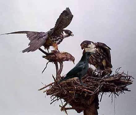 Ένα γεράκι μετέφερε στη φωλιά του ένα κομμάτι κρέας στο ράμφος του.