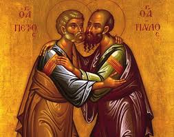 Ο μήνας Ιούνιος καταυγάζεται από τη μεγάλη εορτή των πρωτοκορυφαίων Αποστόλων Πέτρου και Παύλου . Δεν πρόκειται περί μίας απλής εορτής, όπως συνήθως εορτάζουμε τις υπόλοιπες εορτές των αγίων μας: να θυμηθούμε την κατά Χριστόν πολιτεία τους και στο μέτρο των δυνατοτήτων μας να τους μιμηθούμε.