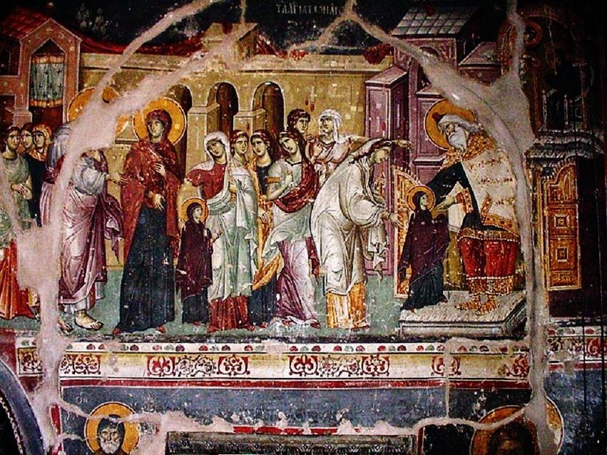 Καταλαβαίνουμε έτσι το λόγο του Αγίου Γρηγορίου του Παλαμά, που λέει ότι η σκηνή του μαρτυρίου μέσα στο ναό του Σολομώντα είναι η ίδια η Εκκλησία και τα «Άγια των Αγίων», στα οποία εισήλθε η Παναγία είναι η προτύπωση της Εκκλησίας και μάλιστα της ίδιας της Παναγίας. Διότι αυτή υπήρξε η στάμνα που κράτησε και φύλαξε μέσα στα σπλάχνα της το αληθινό «μάνα», δηλαδή το Χριστό.