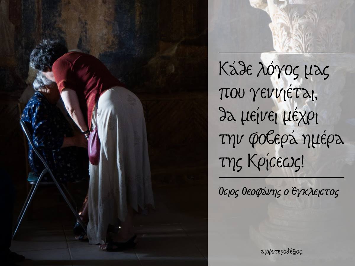 ΚΑΘΕ ΛΟΓΟΣ ΜΑΣ ΠΟΥ ΓΕΝΙΕΤΑΙ , ΘΑ ΜΕΙΝΕΙ ΜΕΧΡΙ ΤΗ ΦΟΒΕΡΑ ΗΜΕΡΑ ΤΗΣ ΚΡΙΣΕΩΣ. (ΑΓΙΟΣ ΙΩΑΝΝΗΣ Ο ΕΓΚΛΕΙΣΤΟΣ)