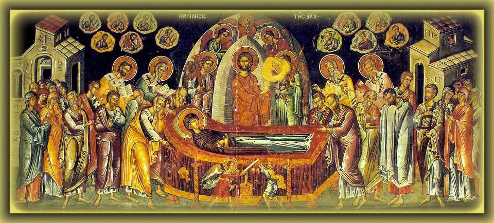 Τον Αύγουστο η Εκκλησία εορτάζει το τέλος της επίγειας ζωής της Παναγίας, τον θάνατό της, γνωστό ως Κοίμηση, μια λέξη όπου το όνειρο, η μακαριότητα, η ειρήνη, η ηρεμία και η χαρά ενώνονται. Τίποτε δεν γνωρίζουμε για τις συνθήκες που περιβάλλουν τον θάνατο της Παναγίας, της μητέρας του Χριστού. Διάφορες ιστορίες, διανθισμένες με παιδική αγάπη …